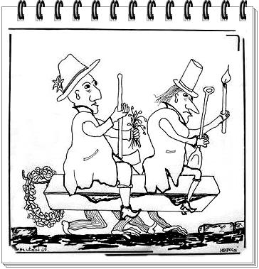 Az idős férfi tétova léptei úgy koppantak a biblikus csendben, hogy még őt is zavarták. Próbált halkan lépkedni, de nem sikerült. Szürke tavaszikabátja, szürke kalapja mélyen a szemébe húzva, csontos- ráncos arcának mély barázdái a kalapkarima árnyékában végtelenül mélynek tűnt. Bal kezében kopott aktatáska himbálózott, keskeny szíjjal átkötve, nehogy fontos iratai elvesszenek, ha kinyílna a zár. Tudta, ezek az iratok ma már beszerezhetetlenek, katasztrófa lenne, ha szétszóródnának a piszokban. Minden kapunál megállt, és nagy figyelemmel megkereste, elolvasta a házszámot. Már vagy félórája vizsgálódott, valami ismeretlen logika szerint következett a számozás, volt szám, amiből hármat is talált, de a kilences számot ez idáig nem találta sehol. A kilences szám alatt volt a Léleknyilvántartó hivatal, és érezte, ez, az utolsó nap, és lejárt a határidő. Gondolta, megkérdez egy utcabelit, annak tudni kell, hogy melyik ház a kilences, de egy lélek sem járt az utcán. Találomra becsöngetett egy házba. Idős, feltűnően sápadt férfi nyitott ajtót, üveges tekintete meg sem rebbent, úgy vizsgálgatta a jövevényt. Mereven állt, és semmire nem válaszolt. Percekig próbálkozott, aztán továbbment. Elért a 12- es házig, és mellette meglátta a táblát, alatta a 9- es számmal. Nagy megkönnyebbüléssel benyitott a vastag, kopott fakapun. A rozsdás zsanérok fülsértően sikoltottak, az volt az érzése, itt időtlen idők óta nem járt senki. A sötét, koszos kapualj elhanyagolt volt, és büdös. Egy jól megtermett patkány sétált végig a kopott kövezeten, unottan végigmérte, és belépett egy kis- sötét pinceszellőzőn. A lefelé vezető lépcsők falán kornyadozó táblácska hirdette, hogy a hivatalba lefelé vezet az út. Kellemetlen szorongását legyűrve, lassan megindult. A lépcsőfordulóban pislákoló negyvenes izzó annyi fényt adott, hogy homályosan látta a lépcsőfokokat. Már a harmadik fordulót is elhagyta, de még egyetlen ajtót sem talált. A hetedik pihenőnél volt egy rozoga szék, kimerülten lerogyott, hogy kicsit kifújja magát. Az áporodott-meleg levegőben arca izzadni kezdett. Ólmos fáradtságot érzett, olyan álmosság vett rajta erőt, hogy félő volt, lefordul a székről. Nem tudta meddig ült ott, lehet, közben el is bóbiskolt. Csak nehogy elveszítsem a táskámat- kapaszkodott a gondolatba, más eszébe sem jutott. Aztán felállt, mint két idegen végtag, indultak meg alatta zsibbadt lábai.