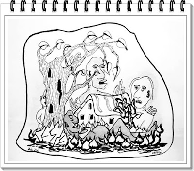 A sötétségből előlépett fehéringes alak felémlebegett, arcát halvány fénybe fogta az elutasító gyűlölet. Jobb karját maga elé tartva kifelé mutatott az ajtón. Én, mint egy rémálomban kihátráltam, az ajtó dörrenve bezárult mögöttem. A koromsötét folyosón állva hallottam a többi láthatatlan ajtószárny csapódásainak hatalmas dörejét, minden csattanás léghuzata kifelé lökött a lépcsők felé. A sűrűn egymást követő események agyamig sem jutottak el, mint bábú tántorogtam, próbáltam talponmaradni. Hátrálva jutottam el az első lépcsőfokig, és éreztem, zuhanok. Alaposan összetörve érkeztem a pihenőre, ahol szerencsémre véget ért kálváriám. A fölém került folyosón kékes villanások cikáztak, a szél vadul csapkodta az ajtószárnyakat, időnként sátáni kacaj és velőtrázó sikolyok korbácsolták pattanásig feszült idegeimet.