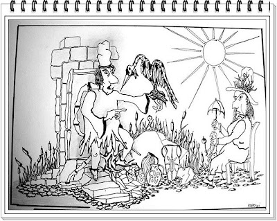 Ma reggel megjelent az Ősz. A párákból bukkant fel a sarkon. Hosszú- rőtvörös köpenye a földet súrolta, szürke, bozontos haja, részben eltakarta ráncos, sovány, színtelen bőrű arcát. Lassan, és méltósággal lépkedett, palástja alatt szendergő téli álmokkal, a jeges halál bűvös érintéseivel, azoknak, akiknek nem lesz tavasszal feltámadás.