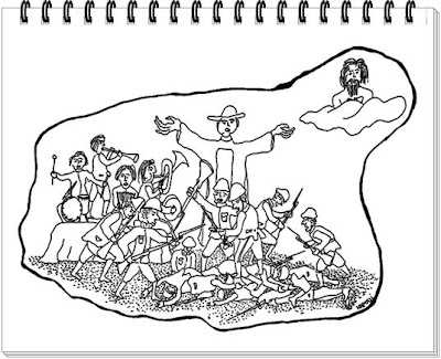 Az ölőfegyverek gúlába állítva, megüdvözülten az Isteni felhatalmazástól, a papi áldástól, hatalmas erőt érezve, alig várták, hogy eldördülhessenek, halálba küldhessenek embereket, mert más egyenruhát viselnek, és nem érteni beszédjüket.De ha már az Isten szolgái is áldásukat adták rájuk, csak igazságos lehet a leendő tömeges özvegycsinálás, árva gyártás, hősökké avanzsálhatnak a békeidők olvasatában, mert őket felszentelték előzőleg, és ez nem mindegy.