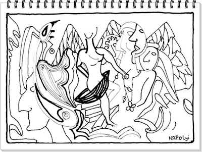 Háza előtt állt felemelt karokkal, égnek fordított mosolygó arccal az egyre növekvő esti párában, áttetszően és boldogan, lepkéi ezreitől sűrűn körülvéve táncolva megindult. Lábai nem érintették a talajt.