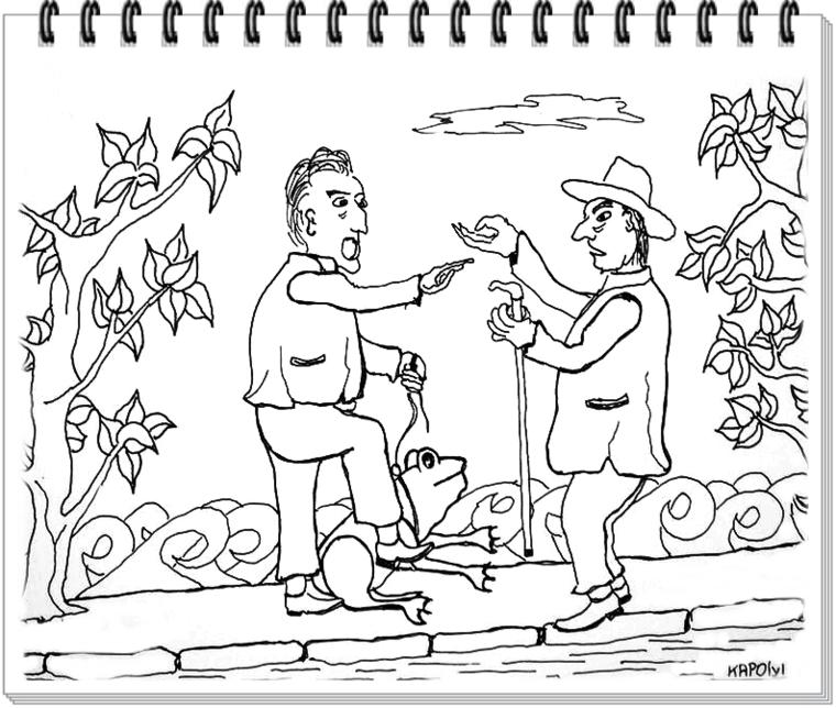 – Miféle békáról beszél, maga süket. Én békét mondtam, nem békát. Hogy lehet egy komoly bejelentésből ilyen idétlen és gyerekes viccet csinálni? Békája legfeljebb magának lehet, és szerencséje van, hogy visszanyertem lelki békémet, mert így nem jövök ki a sodromból.