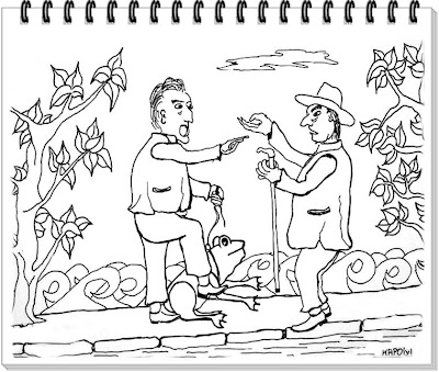 – Mi a fene! Magának nem csak békája van, de még sodra is? A végén még kisül, hogy maga egy folyó, sodrással és apró tarajos hullámokkal, amiben ringatózik a lelki békája, micsoda idillikus kép, magában egy költő veszett el, de végleg. Úgy látszik, magából a klimax egy szentimentális öreg kappant varázsolt. Meg kell vallanom, inkább fájdalmasan lehangoló, mint nagyszerű.