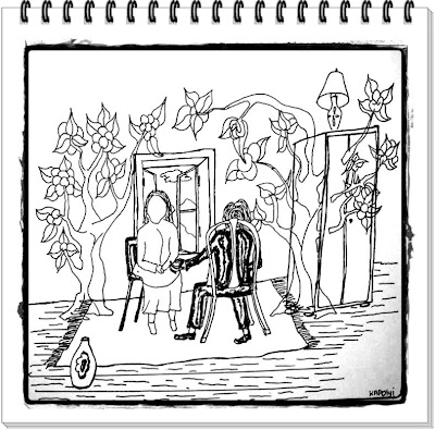 A lélekgyógyász a nagy íróasztal mögött ült, háttal a kintről beáramló fénynek, némán vizslatta bizonytalanul belépő betegét, igyekezvén arcából tájékozódni. Az esetek többségében-nagy rutinjának köszönhetően mindig sikerült benyomásokat szereznie. Mikor a betérő eljutott a perzsaszőnyeg medalionjának közepéig akkor emelkedett fel székéből, és diszkrét mosollyal megkerülvén asztalát, elélépett.