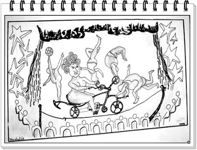 Magas-szikár alakja úgy festett a mélyből mint egy vastagabb rúd, ami vízszintesen tart egy vékonyabbat. Egy darabig maga előtt billegtette a levegőben tartott fekvő botját, aztán óvatos tánclépésekkel, pipiskedve elindult a drótkötélen.
