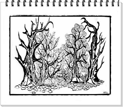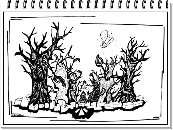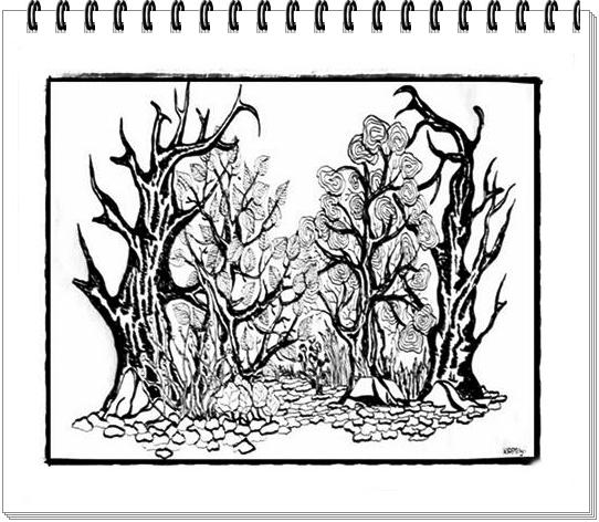 Sejtelmes képet mutatott a kibámészkodónak, hogy a sok vén fa és a gondozatlan bokrok tömege szinte tobzódva akarta átölelni – magába nyelni a házat. Látványában volt valami időtlen és megnyugtató, de éreztette, soha ne merjek kilépni haragoszöld-áttekinthetetlen homályos világába. Figyelte minden rezdülésemet.