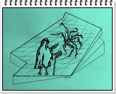 Még fel sem ocsúdott első döbbenetéből, mikor észrevett több repülő alakot amint a házféleségek ablakain ki-be repkedtek. Emberi alakjuk volt-tán még magasságuk is megegyezett, viszont kéz és lábfejeik madárkarmokra emlékeztettek. Testüket színes tollak fedték, arcuk közepén-száj és orr helyett-zöld csőrrel. Vidám repkedésük közben csőrük élénken mozgott, karjaikkal hevesen gesztikuláltak. Láthatóan beszéltek egymással. Ami Kakaskát igazán váratlanul ért, mindegyiknek egymás alatt három szárnya volt.