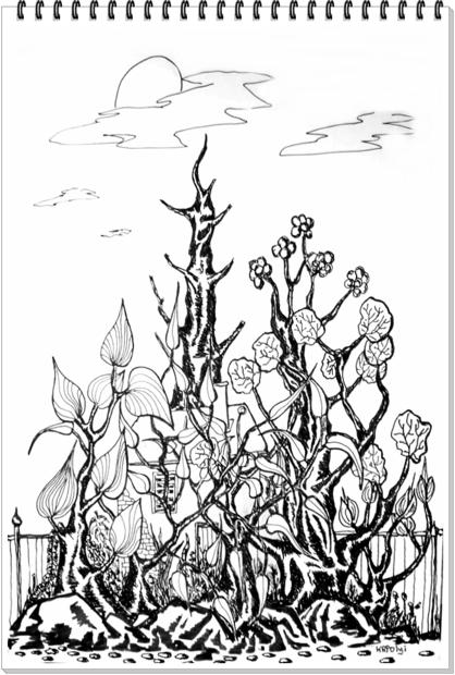 Még a madarak is elkerülték vénséges girbegurba ágaikkal égbemarkoló fáit, a tikkasztó hőségben sem zümmögtek méhek a lombok között.