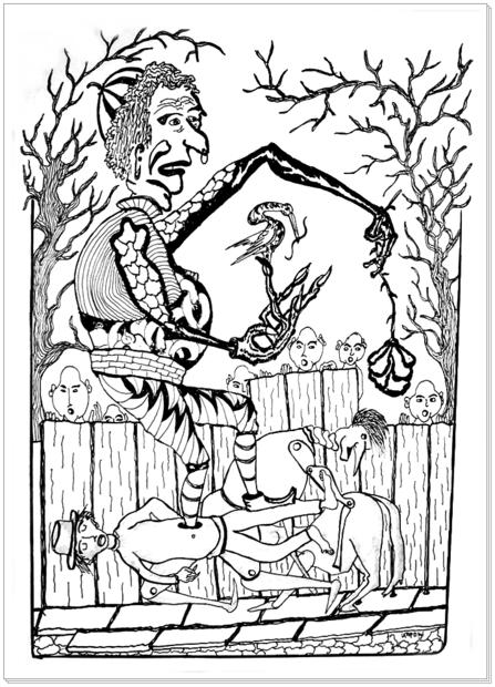 Egy kakadu is rászállt egy vékony ágra szórakozottságában, ami úgy tört le alatta mint a pinty, de nem ez volt a baj, hanem az, hogy meglepetésében elfelejtette kinyitni a szárnyait. Akkorát esett, csak úgy nyekkent…